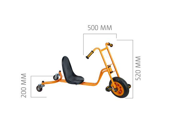 Díky pohyblivým zadním kolům nabízí Drift Rider výjimečnou ovladatelnost. Stejně jako tříkolka se dá přesně řídit. Napětím těla a přenášením hmotnosti můžete „driftovat“ v zatáčkách nebo s vozidlem na místě otáčet. Extrémní zábava z jízdy je zaručena!