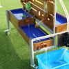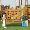 Struktura hraní si s vodou spoléhá na tři rozměrné vany, které poskytují dostatek prostoru pro šplouchání jak se náleží. Děti budou nadšeny možností pumpovat pomocí ruční pumpy vodu do potrubí a sledovat jak si dere cestu různými spojkami. Působivé vodní kolo posiluje radost tekoucí vody.