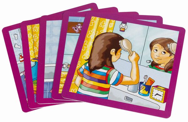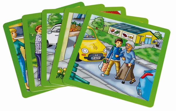 Děti se učí, jak se chovat samostatně a bezpečně v šesti různých nouzových situacích. Každá nouzová situace obsahuje pět karet stejné barvy, z nichž každá na přední straně zobrazuje různé postupy pro danou situaci. Úkolem dětí je uspořádat pět karet nouzové situace ve správném pořadí. Samokontrola na zadní straně karet dětem ukáže, zda se rozhodly správně.