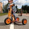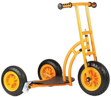 Široká protiskluzová deska ve tvaru půlměsíce spolu se třemi kolečky a brzdou zajišťuje stabilitu a obrovskou zábavu z jízdy. „Bengy“ nabízí skvělý úvod do světa jízdy na koloběžce.