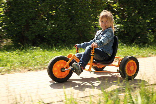 Unikátní pro všechny terény! Tato tříkolka nabízí výjimečný jízdní komfort díky nízkému sedlu a ovládacím prvkům řízení na obou stranách ve výšce sedla.